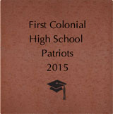 Parents, Students, Faculty, Alumni or Friends: If you would like to become a permanent part of First Colonial High School history and continue the Patriot Tradition, we are offering a unique opportunity. Celebrate the school's 50th anniversary and commemorate your time at First Colonial High School by purchasing an engraved 4”x 8” or an 8”x 8” brick and help us build the way for another 50 years of Patriot Tradition!
